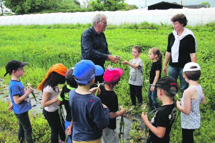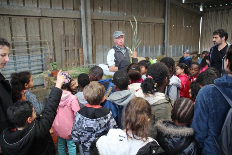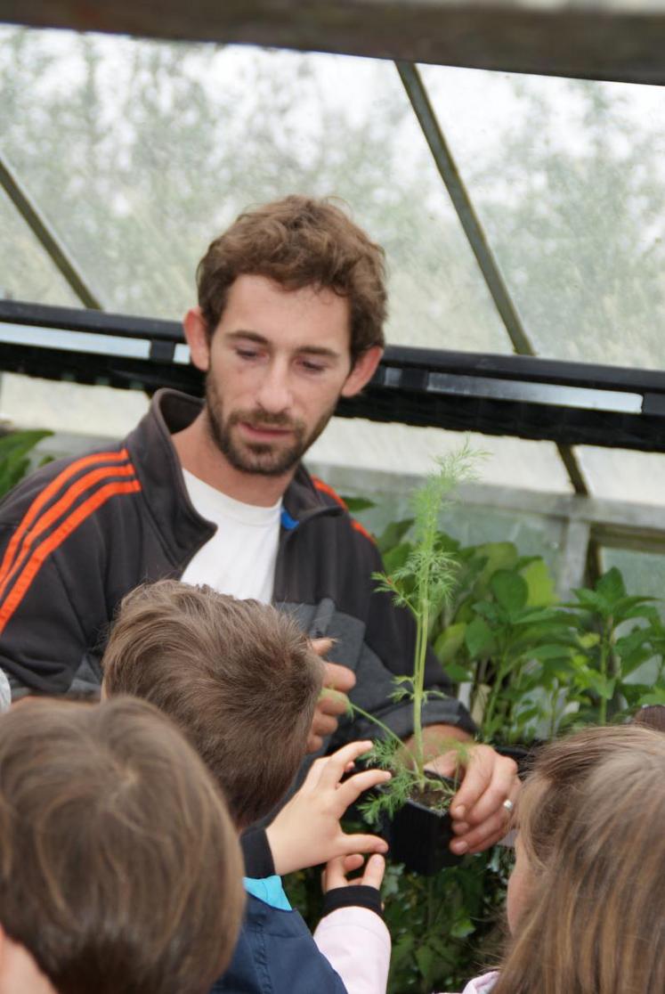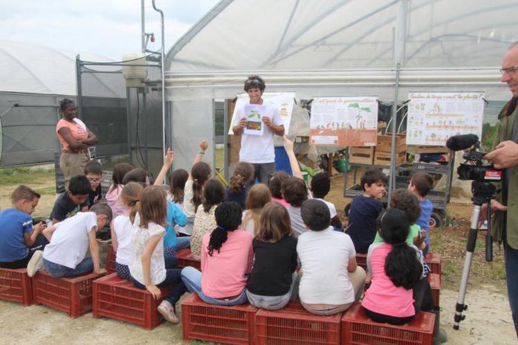 "Un peu d’eau et de soleil et vous pourrez le replanter dans quelques jours dans votre jardin » explique Thomas Portron aux enfants assis devant lui pour un atelier «semis de graine». « Je n’ai pas de jardin ! » lancent certains. « Ce matin nous avons visité l’élevage de cochons de la Baie des champs et quelques-uns n’avaient jamais vu de cochons » confirme Sophie Grau, enseignante des CP-CE1 de l’école Coligny-Cornet de Poitiers.Après avoir beaucoup travaillé sur la ville cette année avec ces élèves, elle est ravie de cette journée passée « à la campagne » au milieu des cochons de la Baie des Champs et des serres de légumes de Tomates et Potiron. Sous les serres de Thomas Portron, les élèves découvrent les premiers légumes de l’été que sont les courgettes, aubergines et carottes.