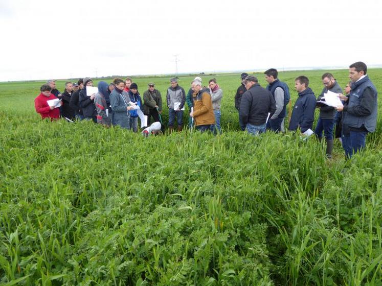 Julien Vivier, du Gaec Le Portail, a choisi sa modalité pour la saison à venir : « je suis parti pour un tiers de céréales et deux tiers de légumineuses, pour mon méteil, sans apport d’engrais au printemps car ce sont les protéagineux qui m’intéressent et qu’ils ne profitent quasiment pas, à ce que j’ai observé, de l’engrais ». Le méteil, en général, est meilleur pour ses vaches que le soja ou les concentrés, ajoute-t-il. L’associé de Yannick Soulisse constate moins de problèmes sanitaires dans leur troupeau depuis qu’il lui donne du méteil - ces six derniers mois.