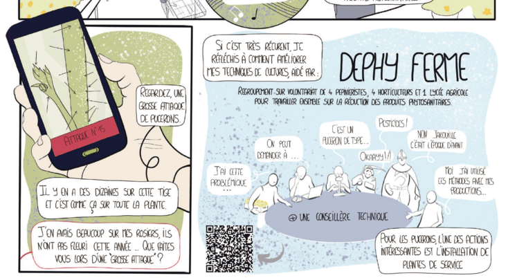 « L’idée m’est venue en regardant une communication commerciale des années 1940 pour le DDT, un insecticide qui aujourd’hui reste très connu alors que le produit est interdit en usage agricole français depuis environ 50 ans ! Cette illustration, qui montre des animaux et des légumes en train de chanter, m’a fait avoir le déclic sur la puissance de communication par l’image, raconte Loïse Triollet. Pourquoi ne pas utiliser cette force pour aider à diffuser les résultats scientifiques et techniques d’aujourd’hui et accompagner la transition de notre agriculture ? ».