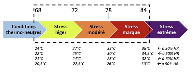 Pour l'élevage, en plus du stress thermique, le site estime les pertes journalières de production, que ce soit pour le lait, la ponte, ou encore le GMQ. Pour exemple, les pertes de lait potentielles sont estimées à partir des températures de l'après-midi à deux mètres du sol et de l'humidité. Cela permet de connaître le THI (Température Humidity Index), qui est ensuite relié au stress thermique et à la production à partir d'études scientifiques.