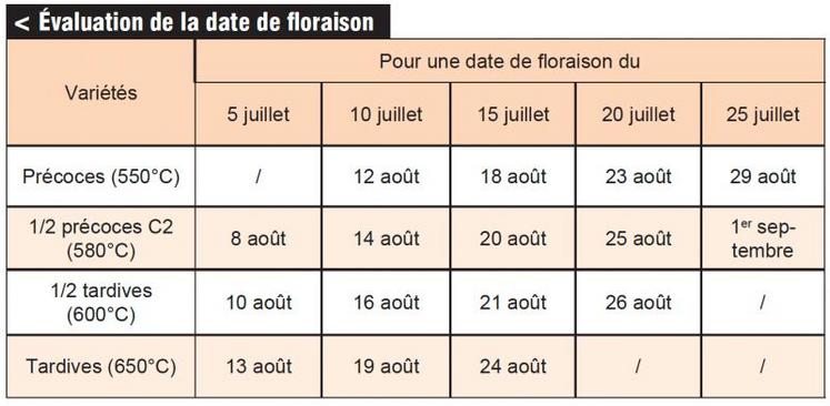 Il conviendra aussi d'être particulièrement attentif dans la phase post-floraison au nombre de grains attendu par m² résultant du nombre d'épis/m² et du nombre de grains/épi (1,33 m linéaire à 0,75 d'écartement), notamment au stade SLAG (stade limite d'avortement des grains), qui se produit entre deux et trois semaines après la floraison femelle.