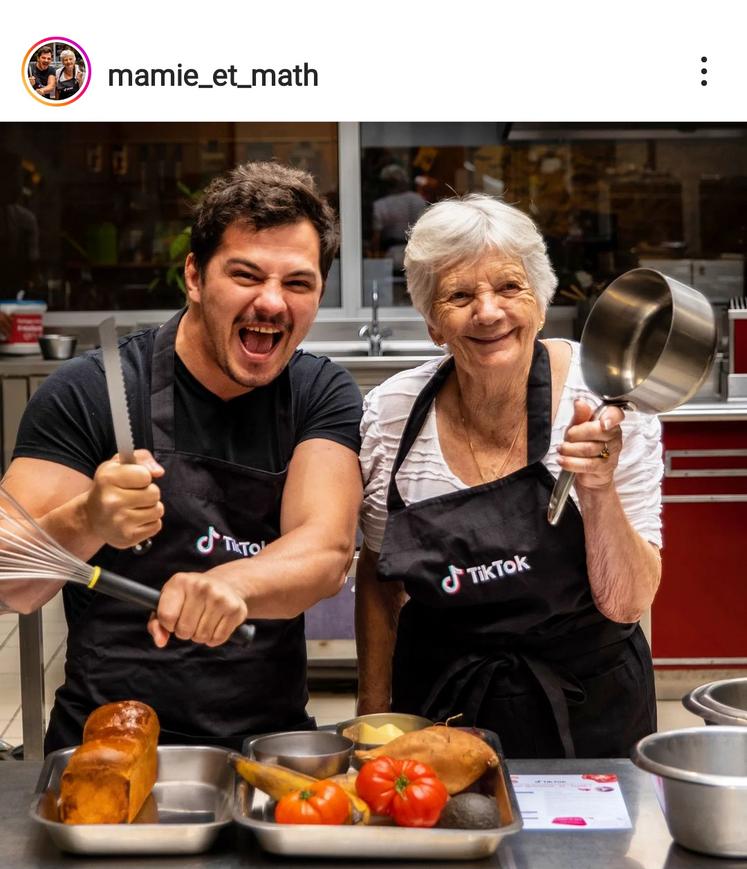 C’est une des belles histoires du Covid. Rentré de Saint Barthélémy où le restaurant qu’il gérait avait comme tous les autres dû fermer, Mathieu Lézeau s’est d’abord installé avec sa compagne à Poitiers. Et puisque sa grand-mère se retrouvait un peu isolée à Royan, le couple lui a proposé de les rejoindre. «J’avais déjà 100 000 abonnés sur Tik Tok, et j’ai proposé à mamie d’en faire avec moi ». Andrée Dubois, 85 ans, ne connaissait évidemment pas trop ce réseau social. «Sur la première vidéo qu’on a faite, on a expliqué notre histoire » raconte Mathieu Lézeau. «En 24h, on a gagné 100 000 abonnés ». Avec leur compte baptisé «Mamie et Math », à la fois sur Tik Tok et Instagram, les deux voient leur communauté augmenter au fil des vidéos, et dépassent aujourd’hui 2 millions d’abonnés. «Un jour, on est allés ramasser des figues, et j’ai dit qu’on allait en faire une tarte. Plein de personnes m’ont demandé la recette!».