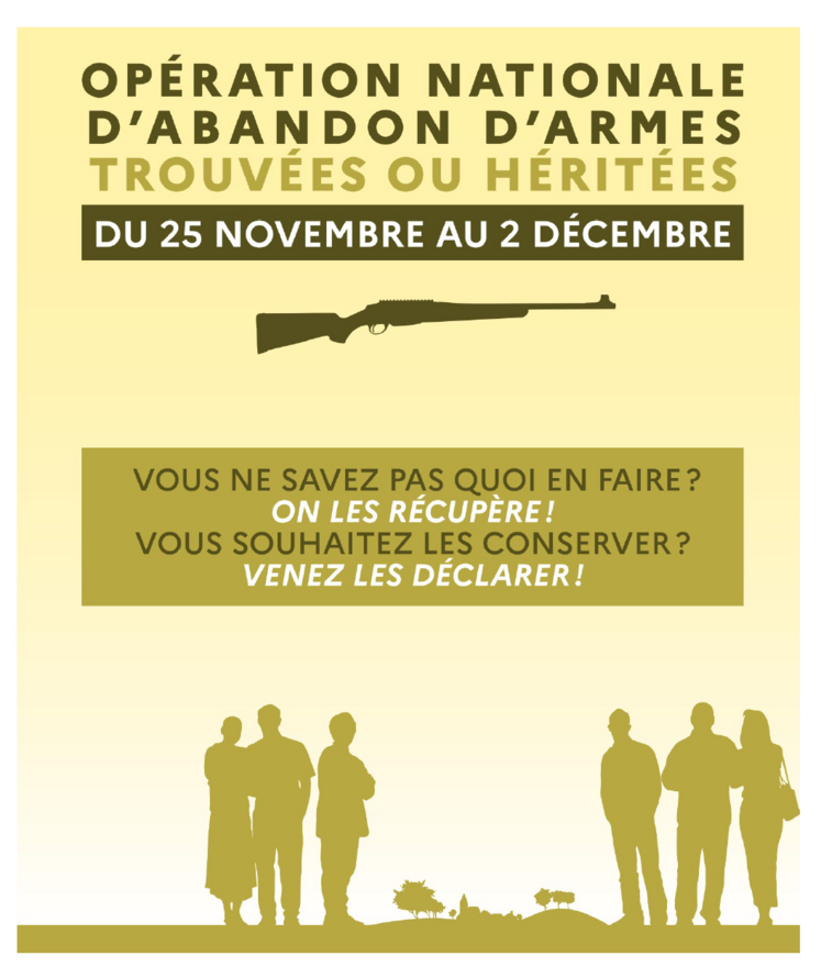 Avec plus de deux millions d’armes qui seraient détenues sans titre, le ministère de l’Intérieur organise, du 25 novembre au 2 décembre une opération nationale d’abandon simplifié d’armes, pilotée par le Service central des armes et explosifs (SCEA). Autrement dit, si l’on ne veut plus garder des armes à la maison dont on ne sait plus quoi faire, il suffit de les déposer dans un armodrome.