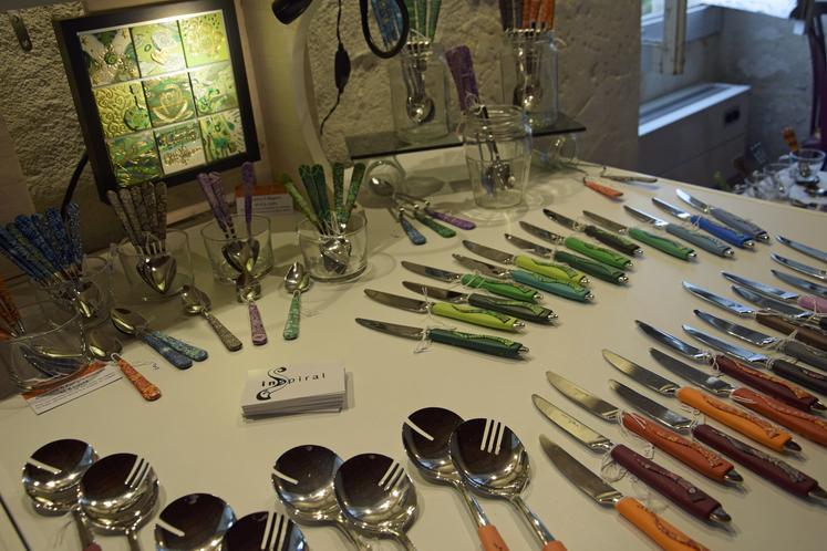 Cet été, les métiers d’art posent leurs valises au cloître de Chalais, en haut du bourg près du château. Du 12 juillet au 20 août, 26 artisans d’art se sont donné rendez-vous pour présenter leurs dernières collections. « Auparavant, l‘exposition était principalement consacrée aux potiers, décrit Loïc Billères, trésorier du Centre des métiers d’art de Charente, organisateur de l’événement. La manifestation était un peu en perte de vitesse puis une nouvelle équipe est arrivée en 2008-2009 pour moderniser ». Installé à Vouzan avec sa compagne Fabienne Fléchard, Loïc est spécialisé dans le gainage d’objets avec de la pâte polymère : « Je travaille la technique de milliaflore, comme les verriers d’art, sauf que nous le faisons à froid, pour créer des motifs très graphiques et décorer des bijoux, des objets, des couverts… »