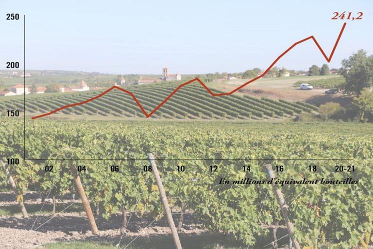 Avec plus de 229millions de bouteilles expédiées, les expéditions de cognac atteignent un nouveau record.