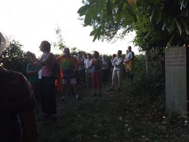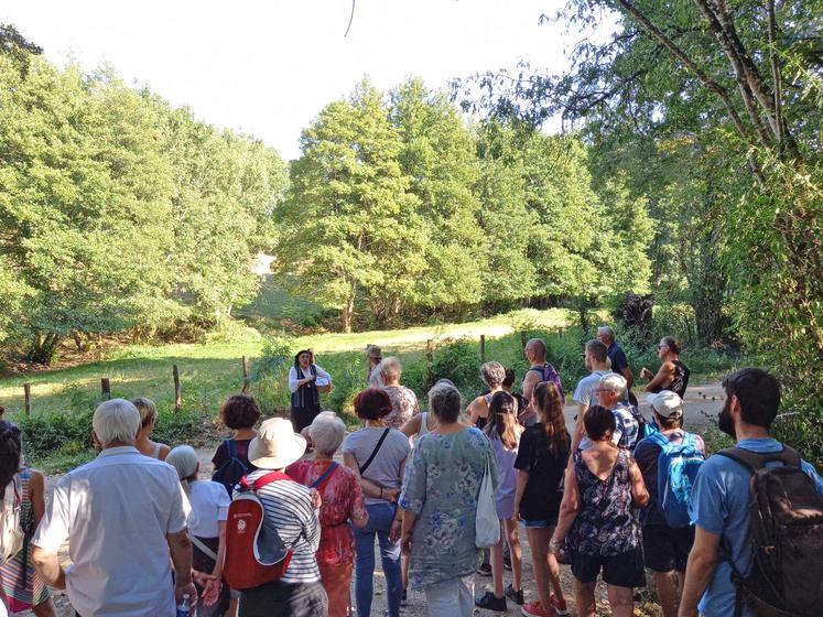 Au coin d’une prairie, nous (ré)apprenons que le pin était un repère pour indiquer la présence de protestants et nous comprenons pourquoi tant de petits cimetières jalonnent les chemins locaux : les huguenots n’étaient pas autorisés à être enterrés avec les catholiques. Un grand nombre de secrets sont dévoilés au gré des questions des uns et des autres. La douceur de l’air et des paysages ajoute un bonus à la balade.