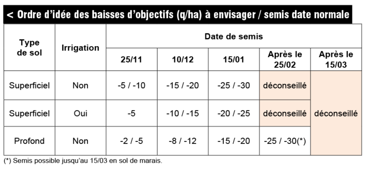- toutes les variétés n’ayant pas la même aptitude à « produire » des protéines, il est nécessaire d’ajuster la fertilisation en prenant en compte leur besoin spécifique qui peut varier de 3,5 à 4,1 unités/quintal ;