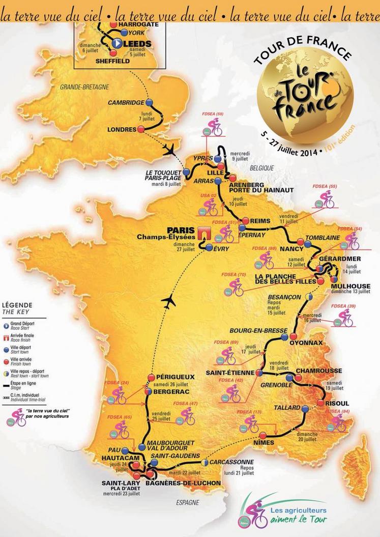 Cette année, pour la 7e édition du concours, la Fnsea suggère aux Fdsea situées sur le parcours du Tour de réaliser des « Terres vues du ciel », à l’image de la planisphère qui figure sur les affiches du Tour. Ces « Terres vues du ciel » devront illustrer à l’intérieur la thématique « de la fourche à la fourchette ». Le thème laissera libre cours à l’imagination et à la créativité des équipes participantes, tout en mettant en avant les pratiques ou les produits locaux.