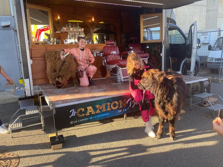 Parmi les animaux plus rares dans la Vienne comme dans le reste de l’hexagone, il y avait notamment des vaches highlands venues d’Auvergne. C’est Guillaume Pobeaud, qui élève une centaine de ces animaux dans sa ferme pédagogique en Auvergne, qui avait fait le déplacement avec plusieurs vaches et veaux. «Ils n’ont pas besoin de bâtiment, grâce à leurs poils qui leur tiennent chaud, et ils ont une vraie facilité de naissance: 98% des vêlages se font sans aide». Et même si le poids de carcasse de ces animaux est faible (330 kg pour un animal de 3 ans), l’éleveur assure que la vente directe est intéressante, notamment parce que les morceaux sont plus petits, et adaptés aux demandes des consommateurs. Et si ses animaux ont attiré les visiteurs, c’est aussi parce que l’agriculteur vient de participer à l’émission «L’Amour est dans le Pré». C’est donc en stars de la télé que deux veaux (et leur propriétaire) ont d’ailleurs été pouponnés dans le camion de la Barbière, installé à l’extérieur du bâtiment. Un salon mobile de coiffure et de taillage de barbe, imaginé par Le Fauteuil 54 / Barber shop, à Poitiers, pour les évènements. Parmi les autres races confidentielles présentes lors de la Ferme s’Invite, il y avait aussi les Black Angus d’Olivier Poirier, éleveur à Surin. L’agriculteur a régalé les visiteurs, avec des saucisses, steaks hachés et autres morceaux grillés sur le brasero imaginé par Grégory Bibard, artisan tout juste installé à Parthenay .