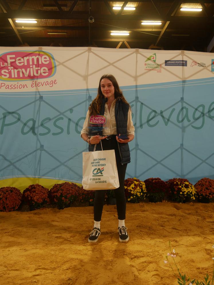 Du côté des Limousines, 65 animaux étaient présents, et ont été jugés par Rikke Benoît, éleveuse au Gaec Benoît (36). 11 Élevages ont concouru : Frédéric Poirier/ Gaec Cailletière- Guilloteau / Gaec Domaine Coiffard / Earl de la Porcelaine/ Scea du Courtiou / Gaec de Nodigeon / Gaec du Marronnier / Alexandre Humeau /Lycée de Montmorillon / Gaec Duverger / Gaec le Chacloue. Mâles de l’année né décembre/ novembre : Soko - Gaec Cailletière-Guilloteau. Males de l’année né octobre : Secret23 - Gaec Cailletière-Guilloteau. Mâles de l’année né septembre : Sushi – Gaec Domaine Coiffard. Mâles de 21-36 mois : Rhum – Gaec Du Marronnier. Mâles + 36 mois : Pompon - Gaec Cailletière-Guilloteau. Jeunes femelles : Tocasse – Scea du Courtiou. Femelles de l’année né décembre/novembre : Séverine - Gaec Cailletière-Guilloteau. Femelles de l’année né octobre : Samantha - Gaec Cailletière-Guilloteau. Femelles de l’année septembre : Sublime – Gaec de Nodigeon. Femelles 15-21 mois : Salière – Frédéric Poirier. Génisses 24 mois : Romandie - Gaec Cailletière-Guilloteau. Vaches pleines moins de 5 ans : Olise- Gaec Cailletière-Guilloteau. Vaches pleines plus de 5 ans : Laponie – Gaec de Nodigeon. Vaches suitées : Ottawa – Gaec du Marronnier. Champion mâle junior - Soko - Gaec Cailletière-Guilloteau. Champion jeune mâle - Sushi – Gaec Domaine Coiffard. Champion mâle adulte - Pompon - Gaec Cailletière-Guilloteau. Championne femelle junior - Séverine- Gaec Cailletière-Guilloteau. Championne jeune femelle - Salière – Frédéric Poirier. Championne femelle adulte - Laponie – Gaec de Nodigeon. Meilleur mâle du concours : Pompon - Gaec Cailletière-Guilloteau. Meilleure femelle du concours : Laponie – Gaec de Nodigeon. Meilleur animal du concours : Laponie – Gaec de Nodigeon.