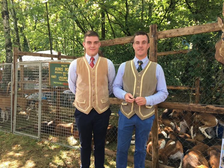 Près de leur meute de chiens poitevins, Clément et Guillaume ont revêtu les costumes de leur équipage de chasse à courre Aunis du Poitou.