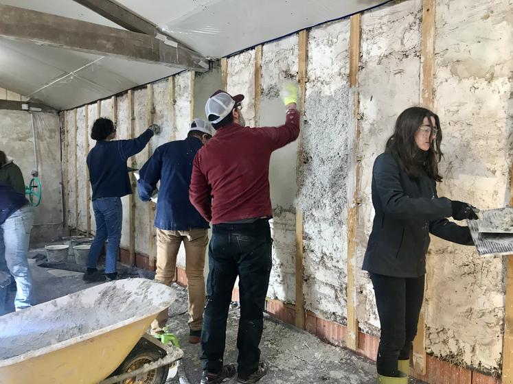Intervenant sur l’atelier de projection de béton de chanvre, Yaël Charton observe les mêmes propriétés : « Avec mon entreprise La Boite à Bâtir, je travaille dans la restauration du bâtiment ancien. C’est logique pour nous de l’utiliser dans la rénovation car il est en adéquation avec des murs en pierre. Il assure une bonne respirabilité des murs, l’air est plus sain ».
