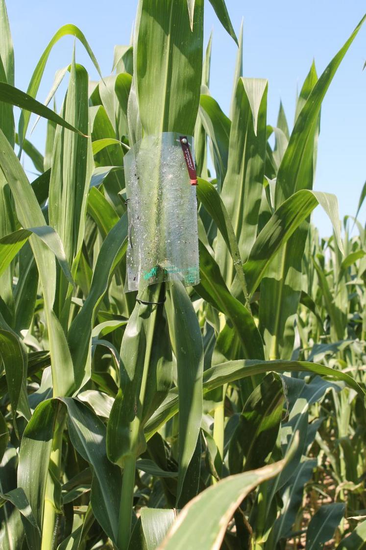 Un piège est constitué d’une plaque engluée et d’une phéromone qui attire le ravageur. Ce dernier se colle sur la plaque. Il est fixé en haut d’une tige de maïs (entre 10ème et 20ème rang). Le piège, posé fin juin, est renouvelé début août sera surveillé jusqu'à début septembre.