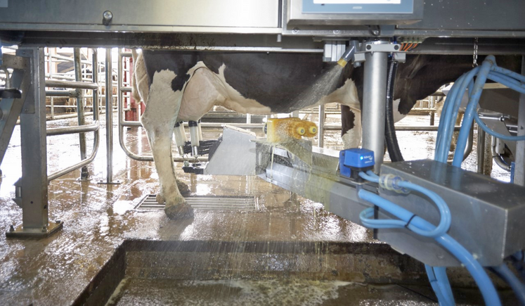 Afin de réduire au maximum les risques de mammite et de contamination du lait, les robots de traite bénéficient de cycles de nettoyage et désinfection. Ils disposent également de diverses solutions pour le nettoyage et le trempage des trayons.