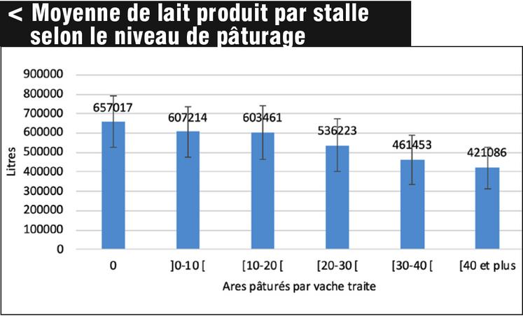 La saturation du robot en nombre de vaches par stalle diminue légèrement à mesure qu'augmentent les ares pâturés par vaches (passage de 60 à 50-55 vaches).
