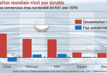 52% du volume d’irrigation mondial, soit 569 km3, ne serait pas durable car il « épuise les ressources en eau…