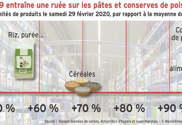 L'institut Nielsen a indiqué le 3 mars une ruée des consommateurs sur certains produits et des ruptures…