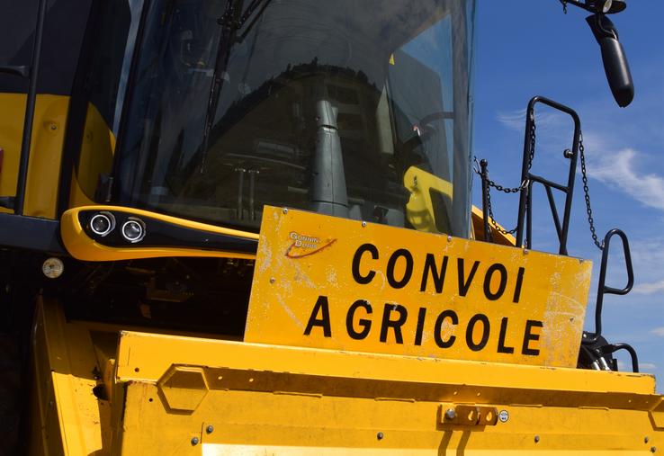 À l’heure de la récolte, les engins, moissonneuses, tracteurs et remorques de grains ou de paille, presse à…