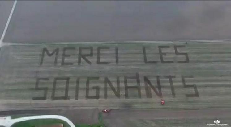 L'exploitant et son fils, installés à Saint-Ciers-sur-Bonnieure, ont tracé dans un champ "Merci les soignants". Diffusée sur Facebook et sur Twitter, la vidéo a été énormément partagée.