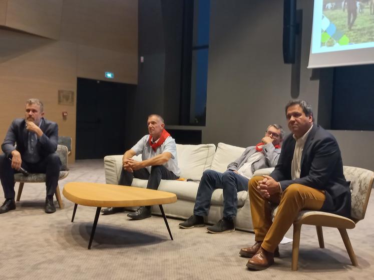 Pour la première édition, la banque verte avait convié Jean-Christophe Roubin, Directeur de l'agriculture et de l'agro-alimentaire à Crédit Agricole SA et Éric Frétillère, agriculteur en Dordogne et président d'Irrigants de France. L'auditorium de Soyaux affichait complet avec une majorité d'agriculteurs, la plupart équipés du foulard rouge "Aime ton agri" cher notamment à l'équipe de la Chambre d'agriculture de Charente.