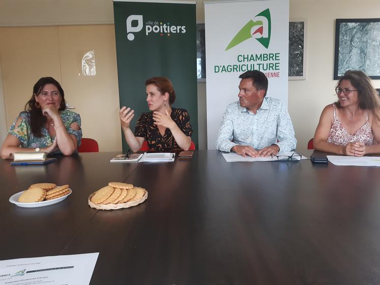 Les désaccords et tensions sur certains dossiers, comme celui de l’eau peuvent parfois donner l’impression que la mairie de Poitiers est éloignée de l’agriculture. « Il y avait des agriculteurs parmi mes aïeux, et j’ai des amis qui sont dans l’agriculture, mais j’ai effectivement peu de liens avec le monde agricole » reconnaît Léonore Moncond’huy, la maire de la ville. « Mais je veux comprendre les réalités du métier ». C’est ce qui a poussé la municipalité à mettre en place l’opération « Producteur / productrice d’un jour », avec la Chambre d’agriculture de la Vienne. « L’idée nous trottait dans la tête depuis un moment. On s’est inspiré de ce que propose la chambre des métiers et de l’artisanat, avec « Artisan d’un jour », que j’ai fait à plusieurs reprises ». Philippe Tabarin, président de la chambre d’agriculture, rappelle aussi qu’il est « plus facile de mettre en place des actions et de fixer des objectifs réalisables en ayant de tels échanges ». Cette semaine, quatre exploitations du département ont ainsi accueilli des élues de Poitiers : la ferme du Maras à Chauvigny, le vignoble de François Turpeau à Saint-Martin-la-Pallu, le domaine Ampelidae à Jaunay-Marigny et l’EARL O Potager Familial à Ouzilly. Des exploitations pas tout à fait choisies au hasard, mais parmi celles qui fournissent des produits à la mairie pour ses cantines scolaires, crèches, Ehpad et restaurants administratifs. « Nous servons 6 500 repas chaque jour, soit plus d’un million par an » rappelle Élodie Bonnafous, adjointe à la production alimentaire locale et à la restauration scolaire.