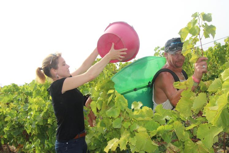 Parmi les 2,8 millions d’euros de denrées achetées, 30 % sont locales ou bio. « Il faut ajouter à cela près d’un million d’euros pour les réceptions. Notre objectif, c’est d’atteindre 100 % d'alimentation locale, avec un palier à 50 % dans 3 ans » précise Léonore Moncond’huy, avant d’ajouter qu’une rallonge budgétaire devrait être votée lors du prochain conseil municipal pour continuer à s’approvisionner en local, malgré l’inflation. Mercredi matin, la maire, Élodie Bonnafous, et Zoé Lorioux-Chevalier, conseillère municipale déléguée à la coopération européenne et internationale, ont débuté la journée par des vendanges mécaniques chez François Turpeau. « Nous y sommes allées à 7h... C’était presque la fin pour eux ! J’ai été surprise de voir que même en vendange mécanique, il faut pas mal de personnel ». Les élues ont ensuite pris la route du domaine d’Ampelidae, comme les raisins qui venaient d’être ramassés. Après avoir visité le site de la Roche et découvert les étapes de fabrication du vin, elles ont rejoint les jeunes vignes installées à côté du Domaine d’Aliénor, à Jaunay-Marigny. Sécateur en main, et avec les consignes des viticulteurs mais aussi les conseils pratiques des saisonniers présents, elles ont coupé les grappes de muscat durant une bonne partie de la matinée. L’occasion de se rendre compte du nombre important des étapes qui précèdent la mise en bouteille, et d’évoquer les difficultés de recrutement. Outre les échanges avec les agriculteurs, ces matinées ont également servi à filmer les exploitants. « Nous pensons diffuser ces vidéos dans les écoles » explique Élodie Bonnafous, qui souhaite aussi que les enfants identifient mieux la provenance des produits qu’ils consomment dans les écoles. Et l’évènement (qui sera renouvelé l’année prochaine) pourrait aussi en inspirer d’autres. Mardi, lors de la matinée passée dans la ferme du Maras, Zoé Lorioux-Chevalier s’est par exemple dit qu’emmener des délégations étrangères visiter de telles exploitations était pertinent.