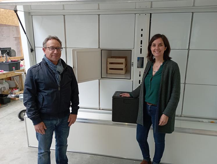 L’habillage final en couleurs manque encore à l’appel, tout comme les casiers de l’un des côtés ; mais la remorque au cœur du concept ‘‘Vrai plus Local’’ prend peu à peu forme dans l’atelier de la société Neos, à Périgny. L’aboutissement d’un travail lancé en juin 2019 par les deux fondateurs de la ‘‘start-up’’, Frédéric Hallonet et Mathilde Hautot. « Je travaillais dans le marketing chez Léa Nature », explique cette dernière. « J’étais en congé maternité et je remettais en question mes modes de consommation. » Avec son voisin de La Jarne, alors ingénieur chez Alstom, « on s’est rencontrés sur des valeurs, sur l’envie de faire bouger les choses », explique-t-elle.