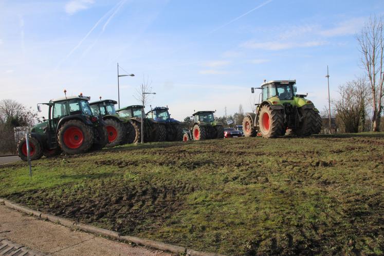 15h : Au rond-point de La colonne, à Melle, la mobilisation démarre à l'invitation des Jeunes agriculteurs et de la FNSEA. Les tracteurs sont partis pour faire un tour de la ville avant de revenir au rond-point.
