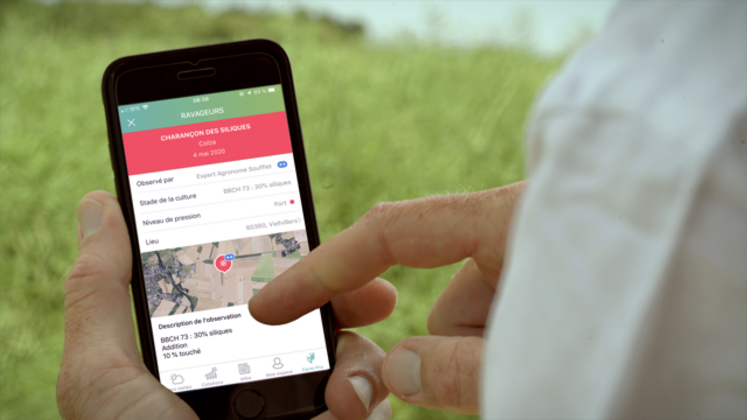 Produite par le groupe Soufflet, l’application mobile Farmi a été augmentée fin avril de deux fonctionnalités : l’une pour partager des observations sur les ravageurs et maladies, l’autre pour aider les agriculteurs à déclencher les meilleurs moyens pour les limiter.