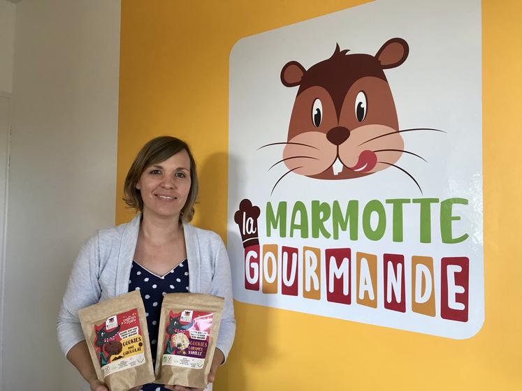Sans œuf, lait, gluten, fruit à coque, arachide et sans traces, telle est la promesse des cookies de la Marmotte Gourmande, la marque que Claire Brunaud a lancée il y a un an et demi, dans la commune rurale Les Gonds (17). « Mon père a des allergies alimentaires. J’ai toujours cherché à préparer des gâteaux qu’il puisse aussi manger », explique cette grande amatrice de pâtisserie, initiée par ses grands-mères.
