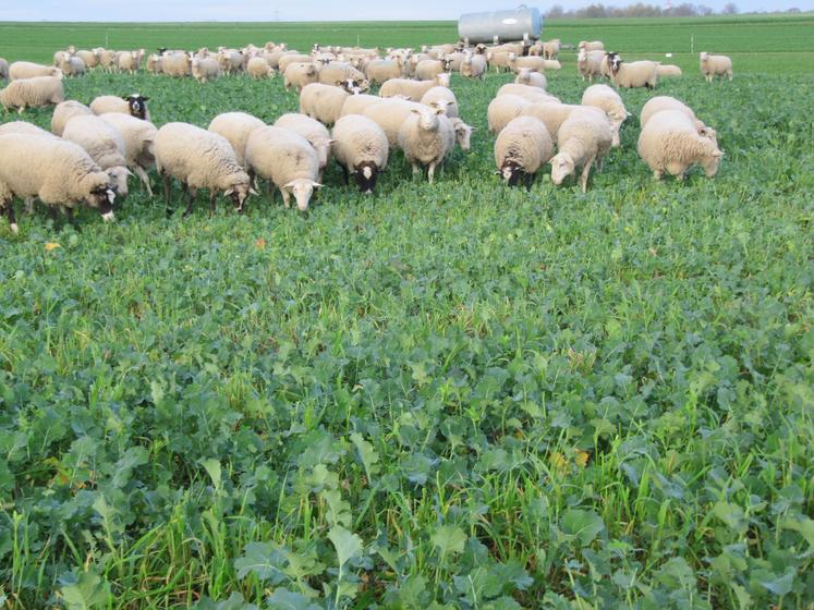 Sur les quatre exploitations céréalières suivies entre 2018 et 2021 (1), le pâturage des couverts a réduit les charges de mécanisation et de carburant en moyenne de 30 € par hectare (hors coût de main-d’œuvre) par rapport à leur broyage. Cet écart est lié pour les trois quarts au matériel et un quart au gasoil. La réduction du temps de travail liée au broyage, en lien avec le type de broyeur utilisé, varie de 20 à 40 minutes par hectare selon les exploitations. Jean Luc Douine, éleveur et céréalier à Guercheville (77) explique qu’il a remplacé en partie le temps de broyage par la pose des fils pour faire pâturer ses brebis : « Je fais des parcs d’environ un hectare et demi et je les change de parcelles toutes les semaines. Je me suis équipé d’un quad. En une heure et demie, j’ai clôturé pour la semaine ». Abel Pithois, céréalier aux Molières (91), ajoute que le partenariat avec le berger n’est pas monétaire.