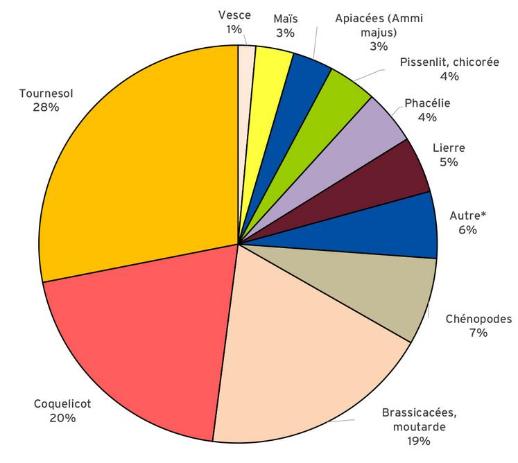 - Pallier les manques de ressources alimentaires en dehors des floraisons des principales cultures (colza, tournesol par exemple).