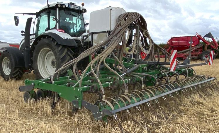 Dans le cadre d’une demi-journée technique sur les couverts végétaux, la CA 17-79 et la FdCuma 79 ont passé en revue trois matériels de semis direct à Amailloux, le 22 juillet : le T Sem 600 de Simtech, l’Avatar 6.16 SD de Horsch et le Force plus 250 de Novag.
