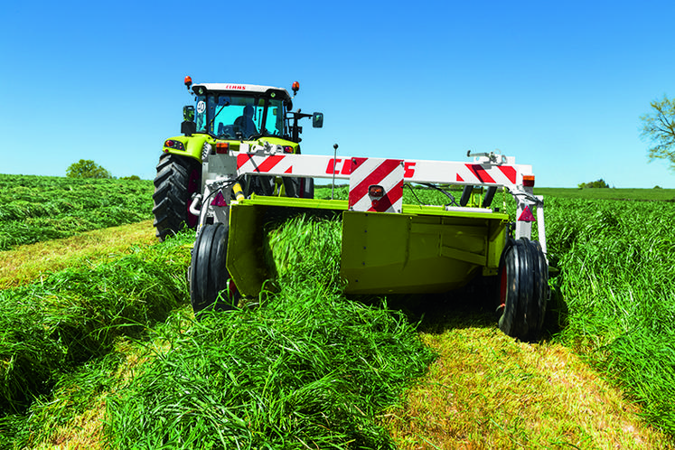 Disponible chez la plupart des constructeurs, le procédé de groupage actif le plus répandu se compose d’un convoyeur à tapis transversal animé hydrauliquement. Il impose également la présence d’un conditionneur, mais se décline aussi bien sur des faucheuses portées que des traînées. Ce type de groupeur apporte de la polyvalence aux faucheuses. Relevé, il autorise l’épandage large. Abaissé, il permet la confection d’un andain de taille variable en adaptant la vitesse du tapis pour juxtaposer les deux passages ou les superposer. Ses performances s’avèrent idéales pour la reprise de l’herbe à la remorque autochargeuse ou avec une ensileuse équipée d’un pick-up de 3 m. Cependant, trois principaux critères peuvent constituer un frein à l’achat : le surcoût, le poids mort et la puissance absorbée. En effet, le tarif de cette option avoisine les 10 000 € sur une faucheuse conditionneuse de 3 m, ce qui augmente considérablement son prix. Le poids de l’équipement, de surcroît en porte-à-faux, impose un tracteur de gros gabarit. Sur le plan de la puissance, des constructeurs annoncent que leur groupeur a tapis absorbe, à lui seul, entre 60 et 80 ch sur des combinaisons de faucheuses triples de 9 à 10 m d’envergure. Dans ce cas un tracteur de plus de 200 ch est indispensable. Ce dispositif séduit davantage les Cuma et les ETA, qui disposent d’engins puissants et sont en mesure de l’amortir sur de plus grandes surfaces.