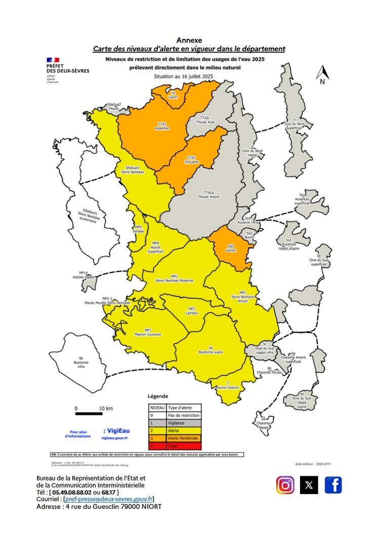 Lire aussi : Deux-Sèvres : mesures de restriction des usages de l'eau au 11 juillet