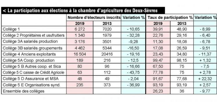 Confédération Paysanne : 24,50 % en 2013, 23,83 % en 2019 ;