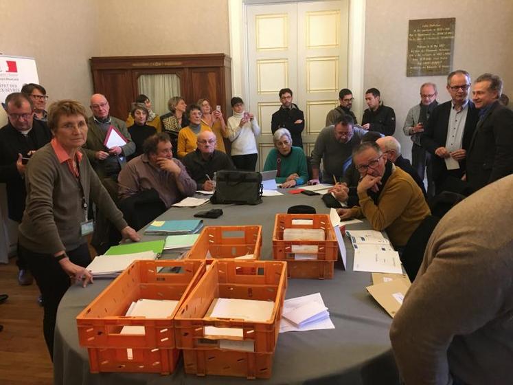 Alors que Didier Doré, secrétaire général de la préfecture, président du bureau de vote par délégation de madame le Préfet, s'apprêtait à introduire l'une des trois clés permettant de libérer le dépouillement automatique des votes électroniques, la liste JA + Fnsea 79 s'attendait pour le moins à confirmer son score d'il y a six ans. Entre 8 heures et 16 heures, les enveloppes reçues en préfecture avant le 31 janvier minuit - soit 63 % des votes exprimés - , ouvertes par une soixantaine de volontaires mobilisés, avaient dévoilé une première tendance. La Confédération paysanne, inquiète à 14 heures, aura au final gagné quelques points grâce au vote électronique, passant même devant la Coordination rurale (voir résultats du vote page 4). Il en aura été de même pour la liste JA + Fnsea 79 qui, à 17 heures, lors de la proclamation des résultats, se félicitait d'avoir franchi de près de trois points la barre des 50 %.