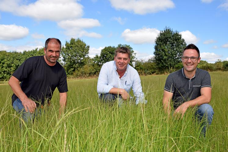 Au lieu-dit Férolles, à Trayes, les terres sont sableuses. La Scea Férolles (trois associés) qui affourage en vert de mars à octobre ses 1 800 chèvres, grâce aux cultures de luzerne (30 ha), ray-grass (100 ha) et prairies (50 ha) réparties sur 180 de ses 230 ha de terres, a choisi pour l’été 2019 d’y tester Eragrostis tef.