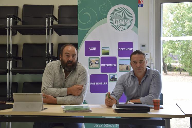 À l’issue de leur conseil d’administration le 2 septembre, Jean-Bernard Sallat, président de la FNSEA Charente, et Yohann Guédon, secrétaire général, ont fait le point sur un été « brûlant » pour l’agriculture. « Les aléas climatiques compliquent notre métier ».