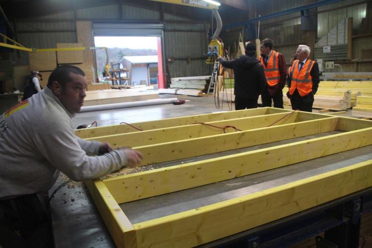 Avec 50 salariés et quelques intérimaires, la SA Merlot réalise chaque année un chiffre d’affaires entre 8 et 10 millions d’euros. Spécialisée dans la rénovation de toiture, les maisons en bois, les chantiers de lamée collée, la construction de bâtiments agricoles et autres poutres en bois, l’entreprise travaille à la fois pour les collectivités (60 % de son chiffre d’affaires), mais aussi les particuliers. Une entreprise familiale que l’association Futurobois a souhaité faire découvrir à Nicolas Turquois. Lui-même exploitant d’une peupleraie dans le nord Vienne, le député fait également partie du club «bois et forêt» au sein de l’assemblée nationale, et peut donc faire remonter les soucis constatés sur le terrain. «Notre objectif, c’est de faire travailler ensemble les entreprises que nous regroupons» explique Nicolas Marot, délégué général de Futurobois. De la scierie au fabricant de meubles, en passant par le tonnelier ou fabricant de maisons en bois, les interactions sont de plus en plus nombreuses. Lors de la construction du Center Parcs des Trois Moutiers, 7 entreprises régionales ont ainsi travaillé ensemble pour réaliser 400 cottages en bois, parmi lesquelles la SA Merlot.