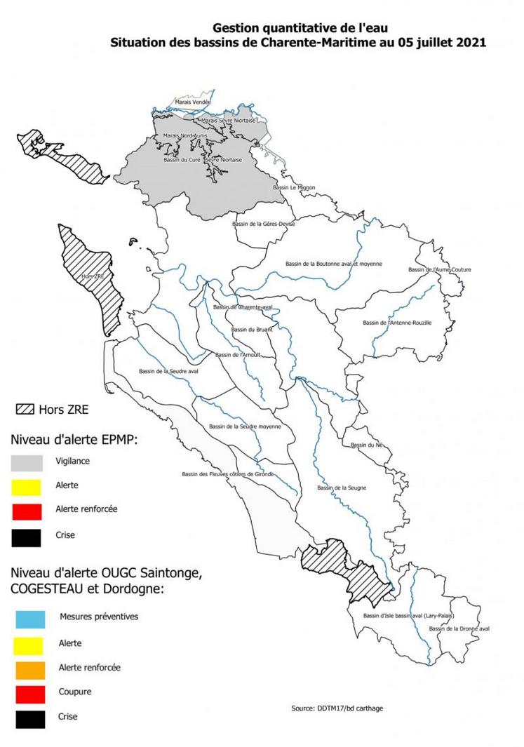 Bassin Charente aval - Bruant : depuis le mercredi 19 mai 8h, levée de l'alerte de printemps. (OUGC Saintonge)