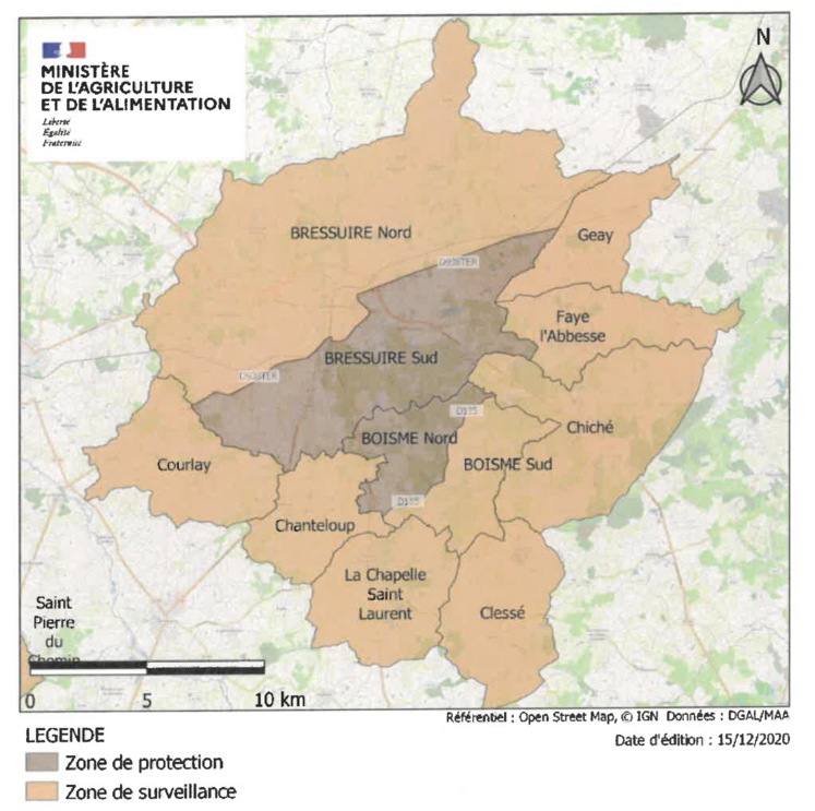 Après la découverte d’un foyer de grippe aviaire chez un éleveur de Saint-Sauveur, près de Bressuire, et l’abattage des 3700 canards, des zones de protection et de surveillance ont été définies. Des dérogations d’entrées et de sorties des animaux sont possibles auprès de la DDCSPP.