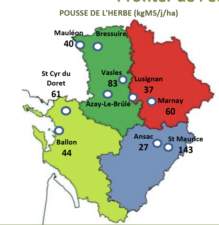 Avec les nombreuses averses des dernières semaines, l’herbe est en pleine croissance. Cependant, le niveau de pousse est très hétérogène en fonction de la localisation géographique, du type de prairie et du type de sol. Le nombre de jours d’avance reste généralement faible, et on ne peut pas toujours exclure des parcelles du circuit de pâturage pour faire de la fauche d’homogénéisation. En même temps, la qualité de la ressource au pâturage se dégrade un peu en raison d’une herbe qui épie et provoque des touffes et des refus. Maintenir le pâturage tournant reste primordial pour ne pas gaspiller l’herbe, maîtriser les refus au mieux, et protéger le sol des prairies les plus sensibles à l’humidité.