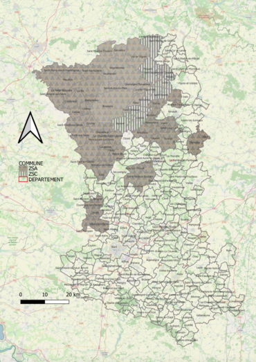 La liste des communes incluses dans la zone réglementée avec leur statut au sein de cette zone (ZP / ZS / ZSA / ZS contiguë à une ZSA) figure en annexe de cet arrêté.