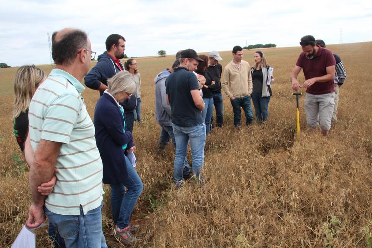 Le Plan Protéines 2030 vise à assurer la souveraineté protéique de la France. Il comporte un important volet de recherche et développement confié notamment à Terres Inovia dans le cadre du programme Cap Protéines. L’objectif de ce dispositif est de donner aux agriculteurs les outils techniques nécessaires pour renforcer l’autonomie protéique à l’échelle des exploitations. C’est dans ce contexte que pour le pois d’hiver, des parcelles ont été mises en place et observées dans toute la France, chez des agriculteurs. Ainsi, cette année, la Chambre d’agriculture de la Vienne, en partenariat avec Terres Inovia, a suivi 10 parcelles de pois d’hiver, du semis (de fin octobre à début décembre 2021) à la récolte. Une partie des agriculteurs participant (appartenant aux GIEE du département centrés sur l’agriculture de conservation des sols, et accompagnés par la chambre d’agriculture), ayant implanté cette culture ou d’autres protéagineux, se sont retrouvés en fin de semaine dernière.