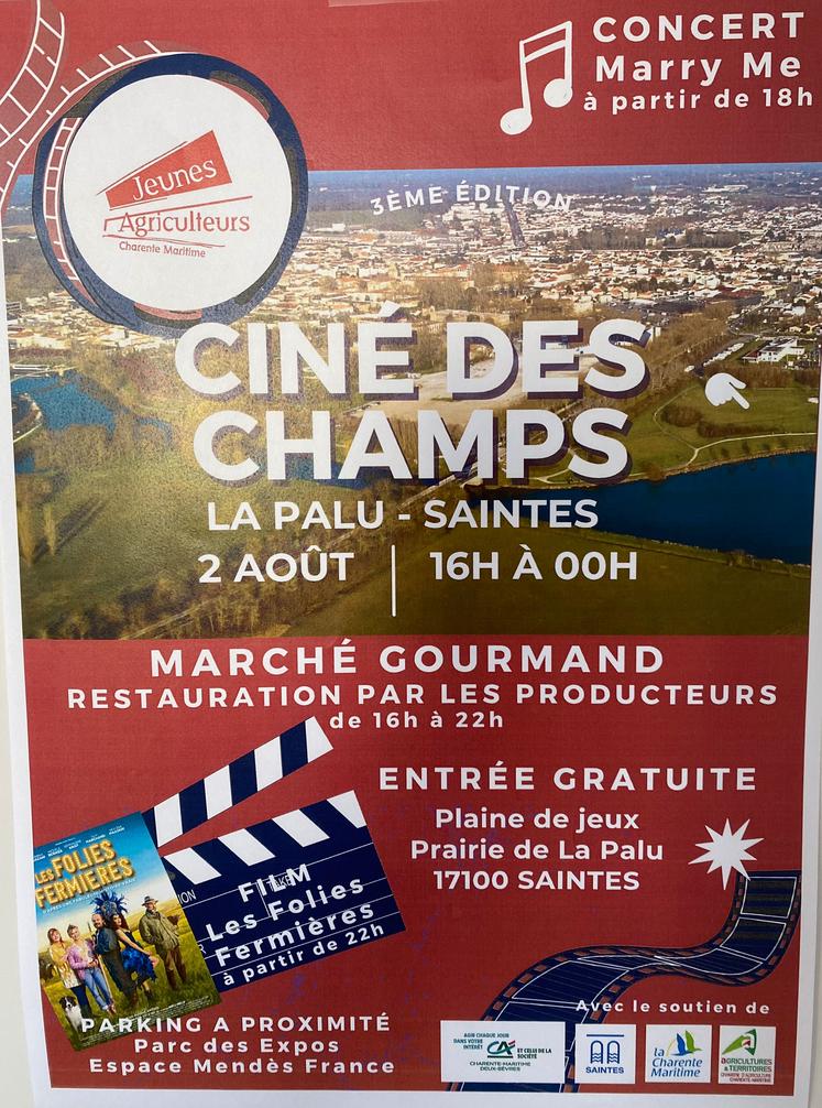 Les Jeunes Agriculteurs du canton de Saintes organisent pour la première fois, à Saintes (les deux éditions précédentes étaient à St Palais sur Mer) le Ciné des Champs.