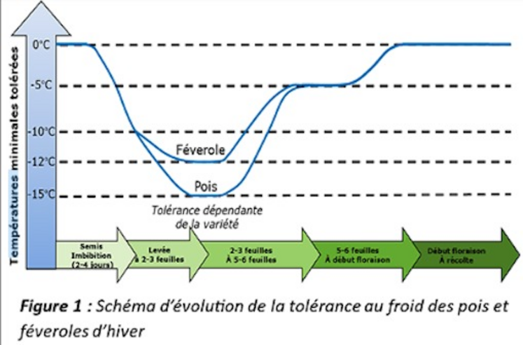 Par ailleurs, malgré des phases de levée relativement longues (> 1 mois), les pois et féveroles s'en accommodent très bien sans dépréciation du rendement, à l'inverse des céréales, grâce à leurs graines à forte réserve énergétique.