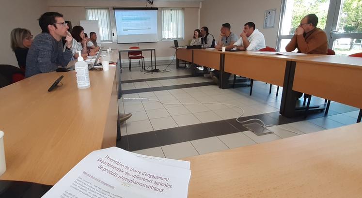 Après une première réunion de travail qui s’était déroulée il y a 3 semaines, la FNSEA et les JA de la Vienne ont réuni ce jeudi de nombreuses OPA pour poursuivre avec eux la rédaction de la charte ZNT de la Vienne. Autour de la table, la coopération agricole, les négoces, l’association des maires de la Vienne, l’AOC des vins du Haut Poitou, les melons du Haut Poitou, les Cuma, les entrepreneurs des territoires, mais aussi la DDT (le Département était excusé). «J’ai lu le document que vous avez préparé, et c’est le délai de prévenance sur lequel je vous invite à être vigilant » prévient Aurélie Renoust, adjointe au responsable sur service eau et biodiversité à la direction départementale des territoires, qui estime que les autres « obligations » de cette charte sont déjà remplies. Concrètement, cette charte prévoit deux moyens de prévenance: le fait de garder aux champs son gyrophare allumé lors d’un traitement, ainsi que les différents BSV.