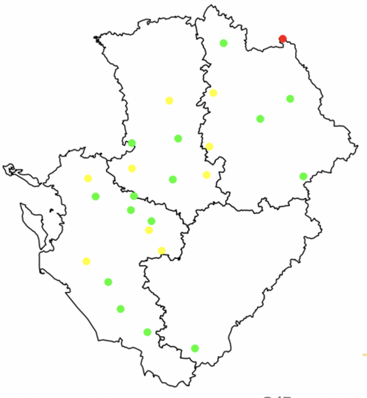 Le vol d’altises d’hiver s’est encore intensifié cette semaine. L’insecte est présent dans les cuvettes jaunes de 31 des 35 parcelles observées cette semaine (soit 89 % des situations contre 75 % et 32 % il y a une et deux semaines). Le nombre d’insectes piégés est lui aussi en augmentation avec en moyenne 10 grosses altises dans les pièges. Le maximum relevé est de 52 sur une parcelle située sur la commune de Sainte-Soline (79).