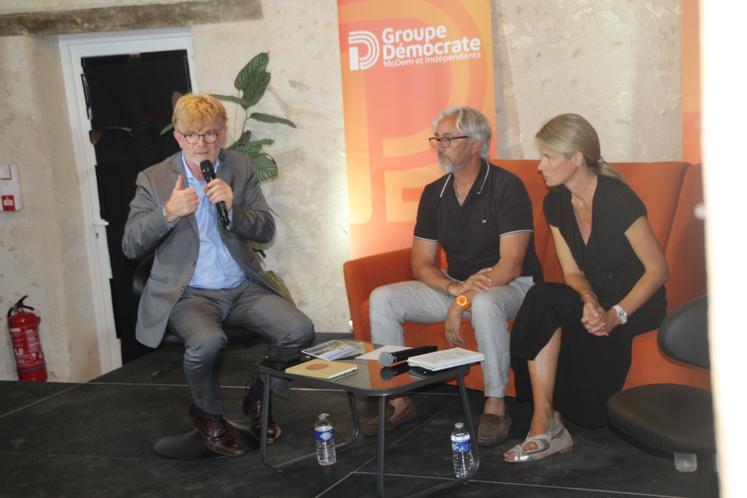Décidément, la commune de Chenevelles est vraiment prisée des ministres et politiques. Après la venue de Dominique Faure, ministre déléguée à la Ruralité et Bérangère Couillard, ministre déléguée en charge de l'Égalité femmes-hommes et de la lutte contre la haine et les discriminations, en juillet à l'occasion des Fiertés Rurales, ce sont cette semaine pas moins de 6 ministres qui s'y sont succédé, et une cinquantaine de députés (parmi lesquels Nicolas Turquois et Pascal Lecamp, parlementaires de la Vienne). Lundi et mardi, ils participaient en effet aux journées parlementaires du Modem. Des sessions de travail autour de l'immigration, les territoires et la démocratie, mais aussi de plusieurs projets de loi : plein emploi et insertion, finances et orientation agricole. Sur ce dernier sujet, c'est Pascal Lecamp, député de la Vienne et Anne-Laure Babault, son homologue de Charente-Maritime, qui animaient l'atelier, en présence de Marc Fesneau, ministre de l'agriculture. La veille, ce dernier avait précisé, lors des Terres de Jim, les orientations de cette LOA, dont le texte devrait être présenté en décembre (lire en page 13). L'occasion pour les députés Modem de rappeler les points qui leur paraissent les plus importants à défendre : la transmission et la formation. "On ne veut pas descendre en dessous du seuil des 400 000 agriculteurs en France" scande Éric Martineau, député de la Sarthe. "Avec Marc Fesneau, on est sur le même constat" estime pour sa part Anne-Laure Babault, qui insiste sur le rôle des formations, y compris depuis les classes élémentaires. "Il faut remettre l'agriculteur au cœur des écoles, pour aider à reconnecter notre société avec le monde agricole".